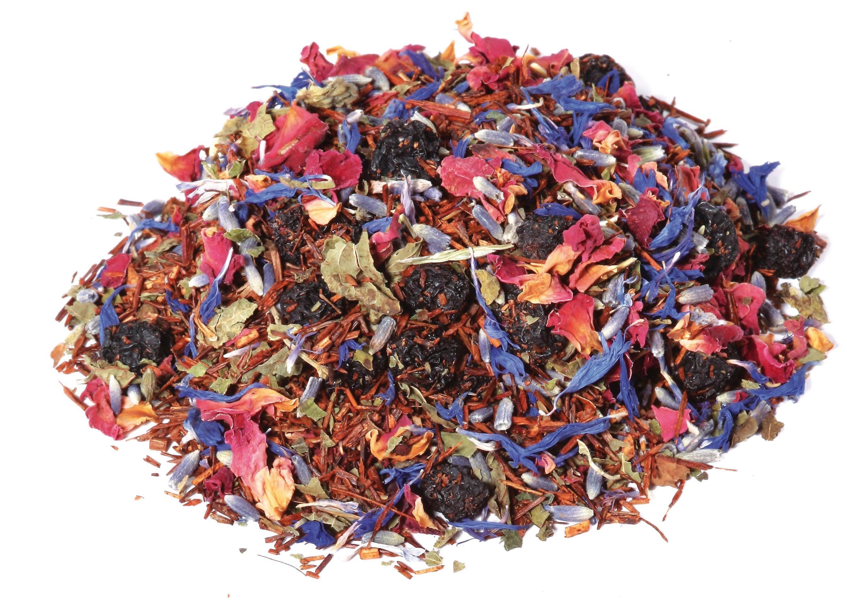 Rooibos Natur, grüner Rooibos, Melisse, Rosenblüten, Lavendel, Aroniabeere,
